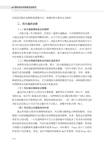 火墙就可以隐蔽那些透漏内部细节诸如 Finger,DNS 服务。Finger 显示了主机的