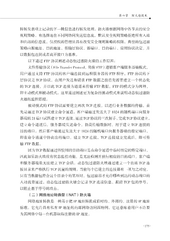 以下通过 FTP 协议阐述动态包过滤防火墙的工作原理: