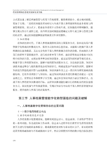 档案的信息和数据,无法充分发挥干部人事档案蕴含的知识价值。然而组织人事