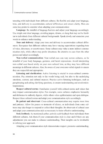 teracting with individuals from different cultures. Be flexible and adapt your language,