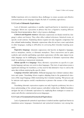 Lack of idiomatic equivalence is another significant barrier in translation across