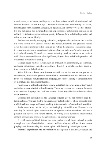 their cultural identity. Personal experiences including travel, migration, or interactions