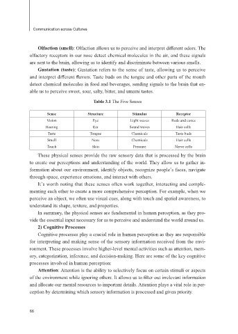 Table 3.1 The Five Senses