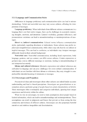 derstandings. Verbal and nonverbal cues may vary across cultures, affecting the inter-