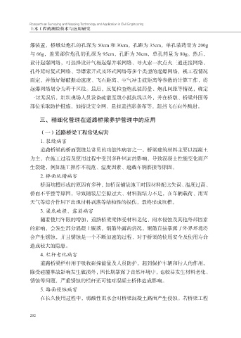 与 66g,盖梁部位炮孔的孔深为 95cm,孔距为 30cm,单孔药量为 80g。然后,