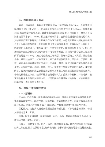 泥用量为 6%(重量比),要求其 7 天浸水抗压强度不小于 4.OMpa。另外还有
