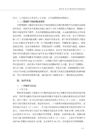 意义。王海东等采用针刀治疗 RA 伴腕关节病变者 89 例,显效 65 例,有效 20 例,