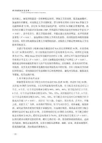加速软组织修复,从而促进关节功能恢复。舒宝珍等采用针刀治疗 RA 伴膝关节