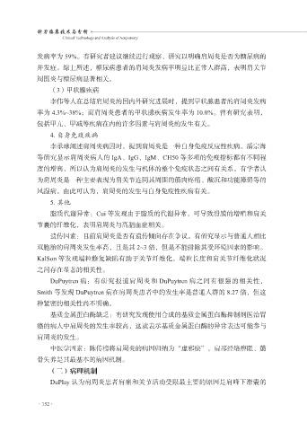Smith 等发现 DuPuytren 病在肩周炎患者中的发生率是普通人群的 8.27 倍,但这