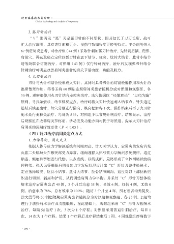 嵴等处联合切割治疗,对照组(43 例)仅行针刺治疗,治疗后发现弧刃针结合