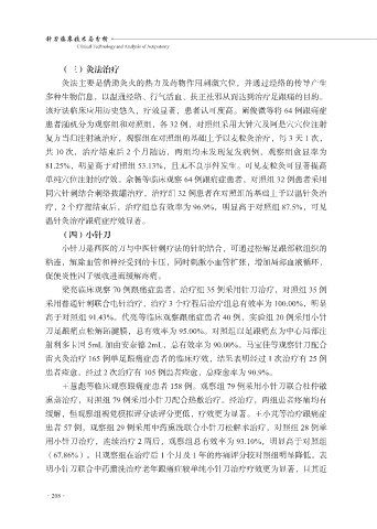 疗,2 个疗程结束后,治疗组总有效率为 96.9%,明显高于对照组 87.5%,可见