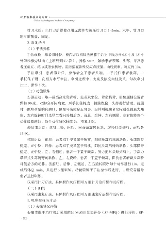 针刀术后:出针刀后操作点用无菌纱布按压针刀口 1~2min。术毕,针刀口