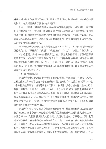 程及总有效率均占上风。林琳通过对比针刀加针刺组与针刺组的临床疗效及视觉