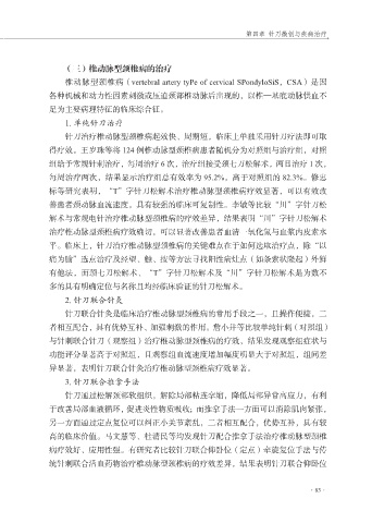 高的临床价值。马文慧等、桂清民等均发现针刀配合推拿手法治疗椎动脉型颈椎