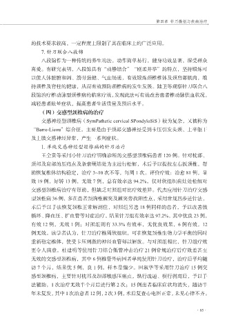 王全贵等采用小针刀治疗明确诊断的交感型颈椎病患者 120 例。针对枕部、