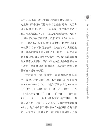 率π=22/7=3+(1/7),1进制下可表示为π=111+ 第