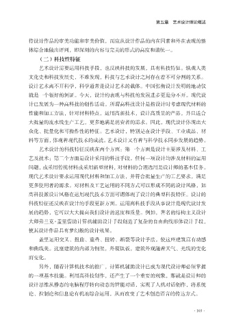 料等方面,体现着现代技术的成就。艺术设计又有着与科学技术同步发展的趋势。