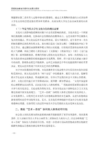 教育的同时宣传中国优秀文化、艺术。在文化传承和创新中增加大学生的文化获