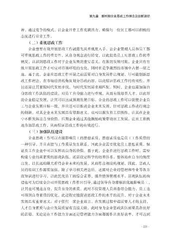 视度,认识到思政工作对于企业发展的重要意义。在新的发展时期,企业只有有