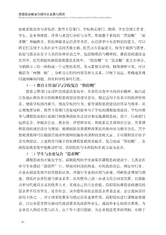 在其中。在高职院校课程思政建设系统中,“供给侧”与“需求侧”是主要部分,