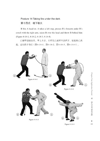 起,过头扔于身后(图4-14-1、图4-14-2、图4-14-3、图4-14-4)。