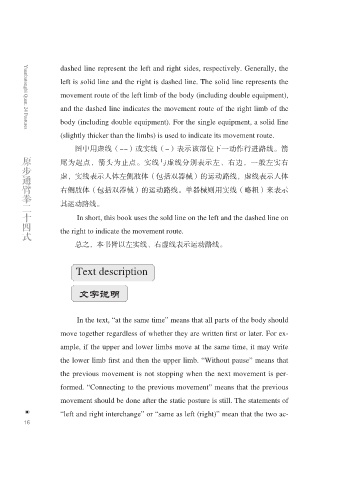虚,实线表示人体左侧肢体(包括双器械)的运动路线,虚线表示人体