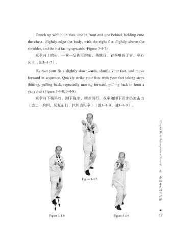(击出、拉回,反复前行,拉回为阳拳)(图3-4-8、图3-4-9)。