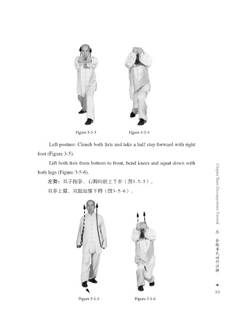 双拳上攉,双腿屈膝下蹲(图3-5-6)。 Chapter Three Decomposition Tutorial