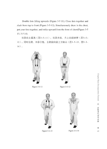 12);同时含胸,双拳合抱,自胸前向前上方撞击(图3-5-13、图3-5-