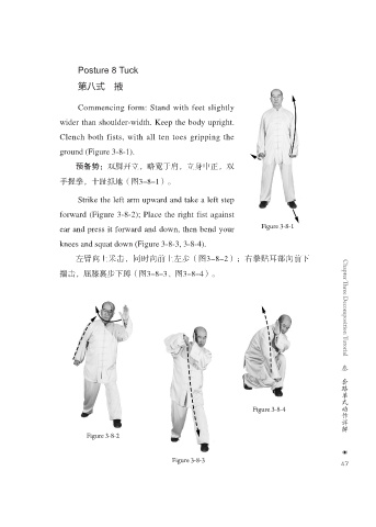 揣击,屈膝裹步下蹲(图3-8-3、图3-8-4)。 Chapter Three Decomposition Tutorial