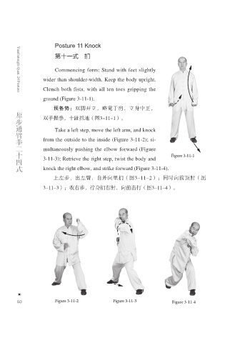 3-11-3);收右步,拧身扪右肘,向前击打(图3-11-4)。