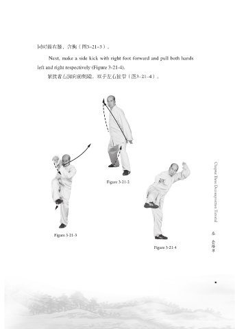 紧接着右脚向前侧踹,双手左右扯带(图3-21-4)。