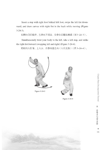 右脚向身后插步,左拳向下搅击,右拳在后随动画弧(图 3-24-3)。