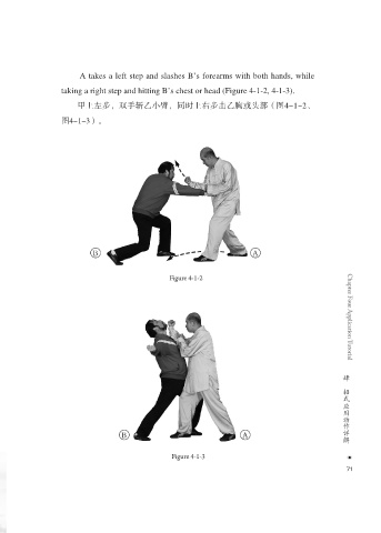 taking a right step and hitting B’s chest or head (Figure 4-1-2, 4-1-3).