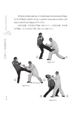 step to strike B’s jaw (Figure 4-5-4, 4-5-5).