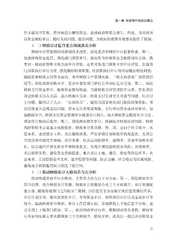 点实现上下级部门联动。第二,拓展财政审计内容,紧跟财政改革进程。财政审