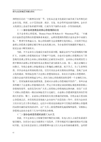 文化的建设,特别是忽视了企业核心价值观的培育。在培育企业核心价值观时,