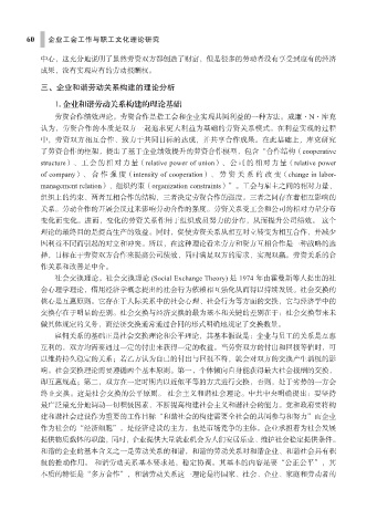 关系。劳动合作的开展会反过来影响劳动合作的强度。劳资关系受工会和公司的相对力量分布