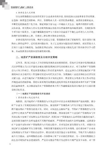 贡献力量。在进行地质矿产资源勘查以及开发的过程中,既需要充分考虑开发工作对周边