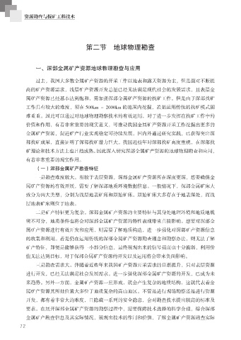 矿理论和技术方法上也日趋成熟。因此深入研究深部金属矿产资源的地球物理勘查和应用,