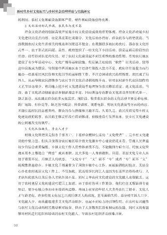 缺乏新意,无法满足群众的多元化需求。现阶段,很多农民群众的文化活动主要是看电视、