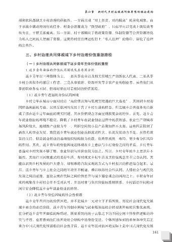 的作用。其次,返乡青年的价值困境还体现在乡土意识与乡村身份之间的矛盾。乡村青年
