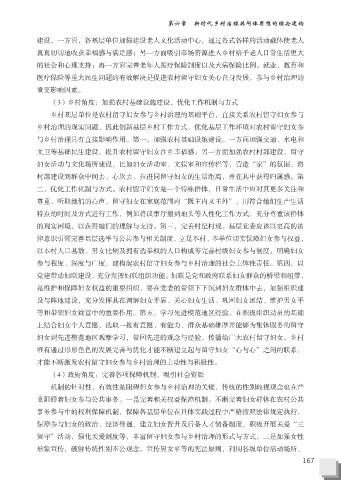 留守”活动,强化关爱制度等,丰富留守妇女参与乡村治理的形式与方式。二是加强女性