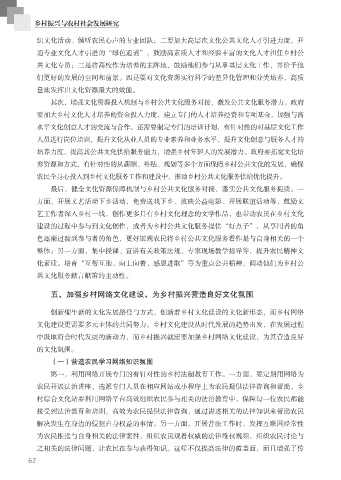 培养力度,提高其公共文化供给服务能力,增强乡村年轻人的发展潜力。政府要拓宽文化培