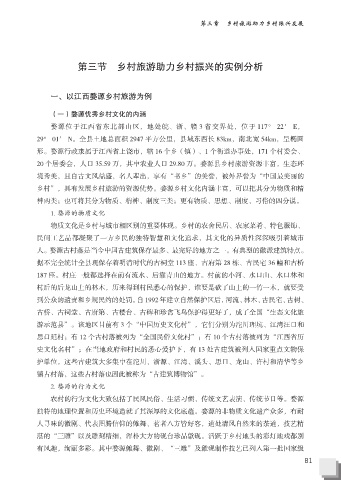 游示范县”。该地区目前有 3 个“中国历史文化村”,它们分别为沱川理坑、江湾汪口和