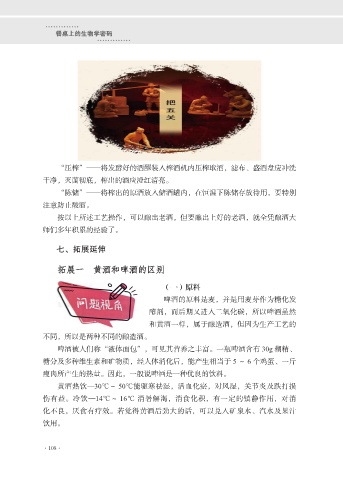 “压榨”——将发酵好的酒醪装入榨酒机内压榨取酒,滤布、盛酒盘应冲洗