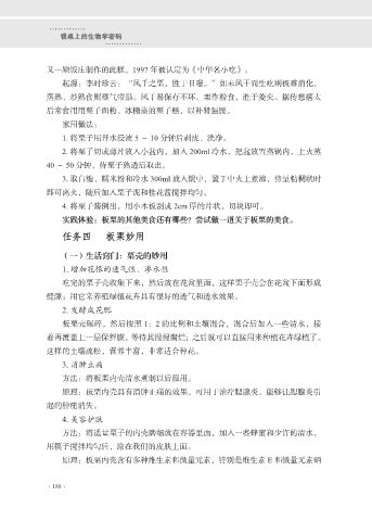 原理:板栗内壳含有多种维生素和微量元素,特别是维生素 E 和微量元素硒