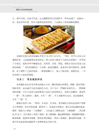 岛城历史悠久的青岛锅贴开始于 20 世纪 20 年代,“当时一对中年夫妇自京