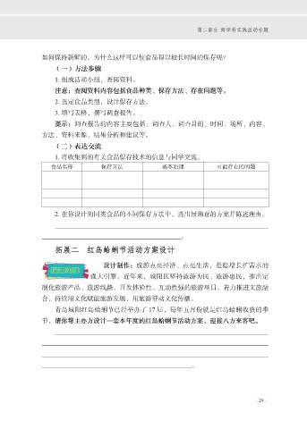 1. 将收集到的有关食品保存技术的信息与同学交流。