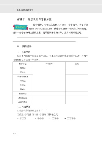 根据下列表格中的食品保存方法,写出这些方法所依据的科学原理,并列举